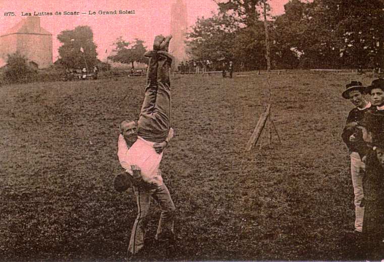 « Scaër l’emportait partout! Scaër, le pays des luttes... Scaër où les jeux anciens sont toujours honorés. Et qui chaque dimanche, au milieu de ses prés, dans les beaux soirs d’été, voit sa mâle jeunesse, Exercer sous le ciel sa force et son adresse ». Ces vers bien connus du poète Auguste Brizeux évoquent le Pardon de Scaër au début du 19è siècle.